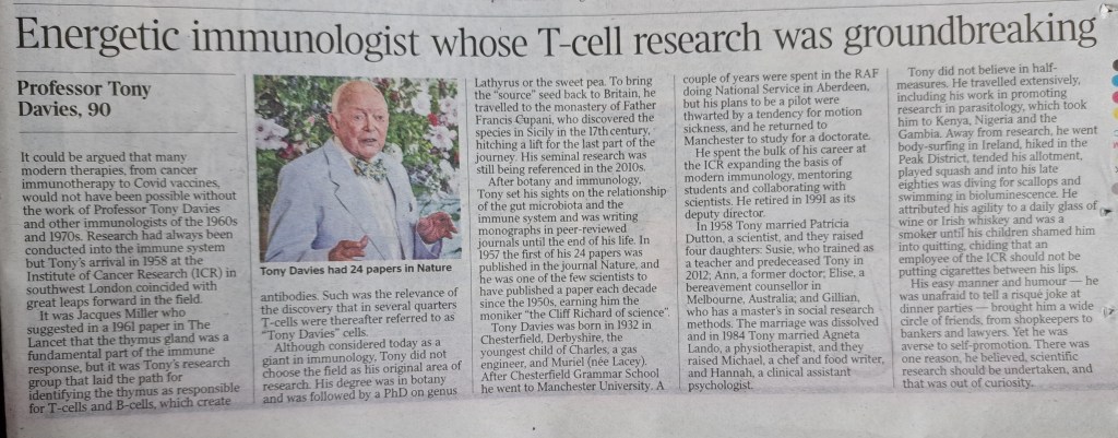 You will see from the article what a massive contribution Professor Davies made to the world.